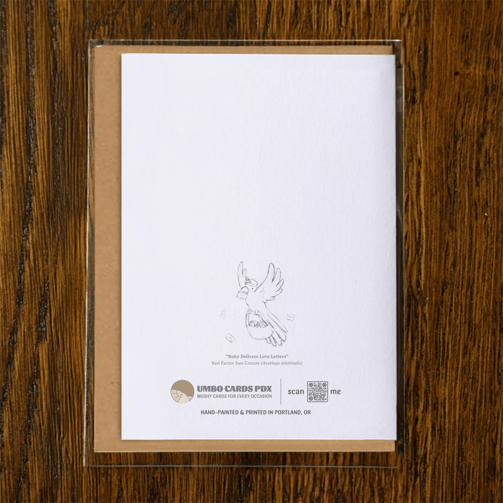 “Ruby Delivers Love Letters” (4x6 blank greeting card)