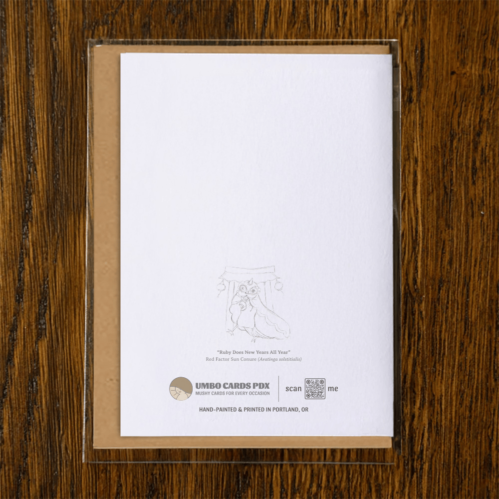 "Ruby Does New Years All Year" (4x6 blank greeting card)