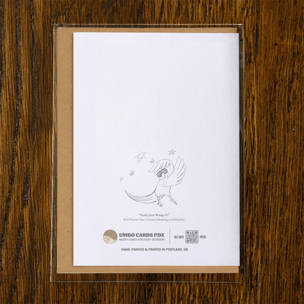"Ruby Just Wings It" (4x6 blank greeting card)