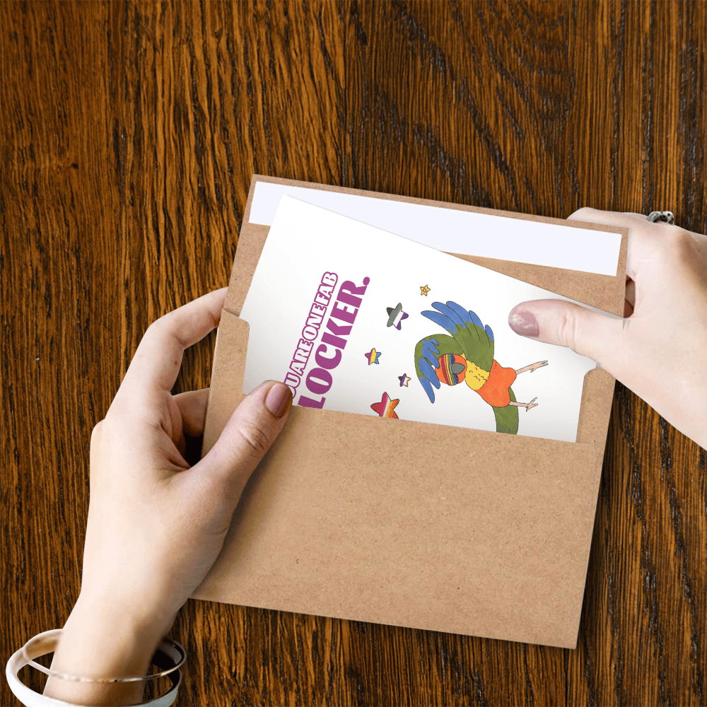 Umbo Rubys are hand-inked and printed on premium heavyweight cardstock in Portland, OR. And, every card comes in a rigid mailer with resealable sleeve (for gifting) and self-sealing envelope - no icky licky!